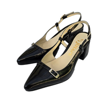 Slingback shoe o zapato destalonado con terminación en punta, fabricado a mano de manera artesanal. Nuestra Agatha es abierta atrás, correas con hebilla plateada. Un diseño clásico y atemporal.